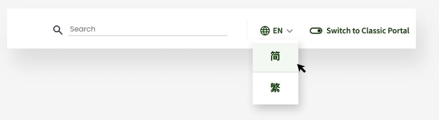 The Portal is available in three languages: **English**, **Traditional Chinese**, and **Simplified Chinese**. Users can select their preferred language, and the Portal interface and content will be displayed accordingly. Users could also change the language in the "Settings" page. &#x20;