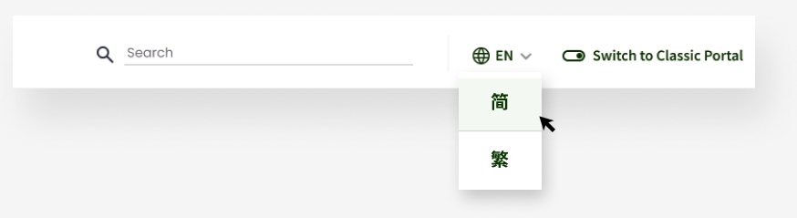 The Portal is available in three languages: English, Traditional Chinese, and Simplified Chinese. Users can select their preferred language, and the Portal interface and content will be displayed accordingly. Users could also change the language in the "Settings" page.
